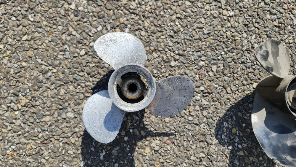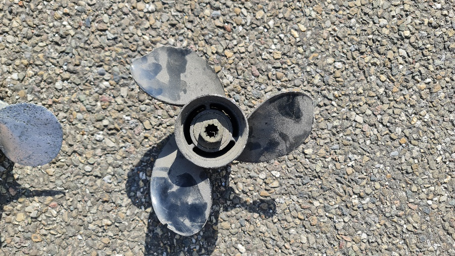 Bij hele kleine buitenboordmotoren worden ook kunststof propellers gebruikt. Dit is een goedkopere variant maar voor de gebruikte vermogens voldoende schroef en hiermee heeft u geen last van aantasting door het water.